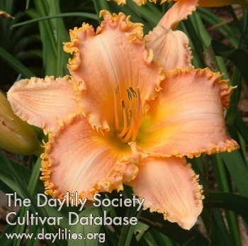| Description : bright red with gold toothy ruffled edge above green throat | |